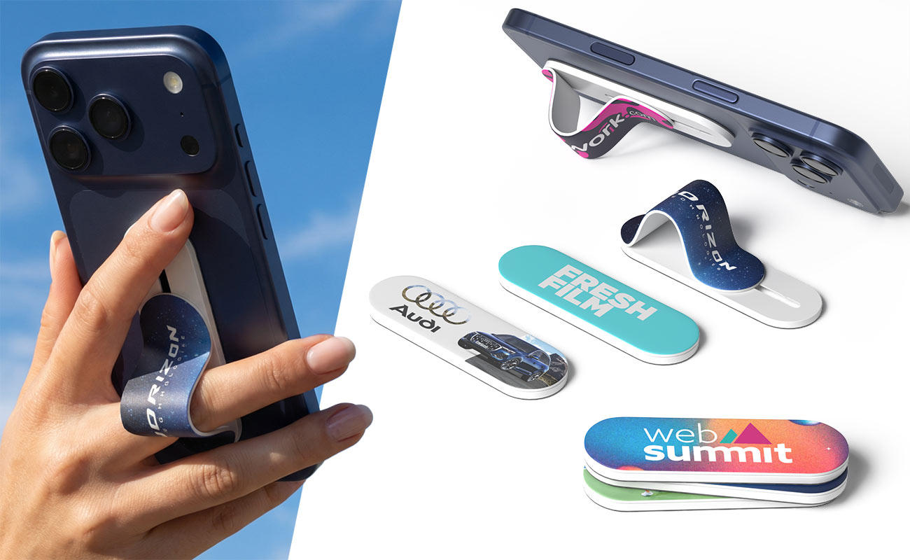 Der Digit Phone Grip ist ein lustiger und praktischer Werbeartikel, der immer wieder gerne verwendet wird. Der spezielle Bereich für Ihr Branding kann mit Ihrem Logo, Ihren Grafiken und vielem mehr bedruckt werden. Befestigen Sie den Digit einfach an Ihrem Smartphone, indem Sie die klebende Rückseite abziehen und ihn 30 Sekunden lang auf das Smartphone drücken. Anschließend können Sie den Fingerhalter nach Belieben nach oben und unten schieben.