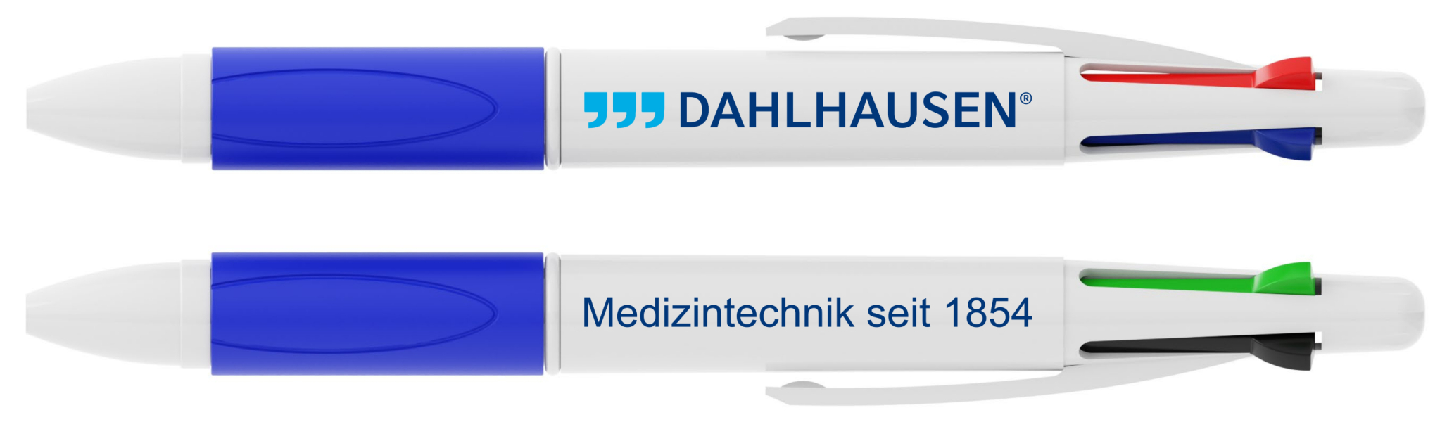 Der Quad ist ein klassischer 4-Farben-Stift mit blauer, roter, grüner und schwarzer Mine in einem Modell. Jede Farboption lässt sich über die Klickschieber an der Oberseite des Stifts ein- und ausfahren. Der bequeme Gummigriff ist in einer Vielzahl von Farben erhältlich, passend zu Ihrem eigenen Stil. Die weiße Außenhülle kann per Fotodruck mit Ihrem Logo, Slogan und mehr versehen werden.
