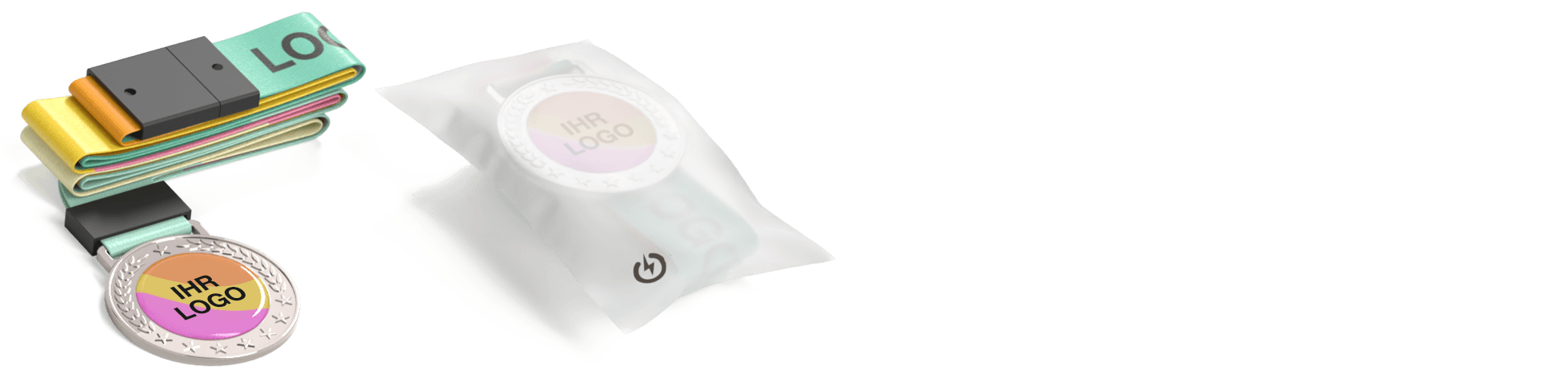 - Fügen Sie Ihr Logo und Ihren Claim auf dem Umhängeband hinzu
