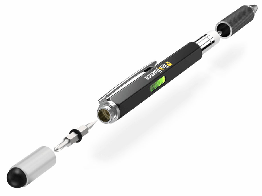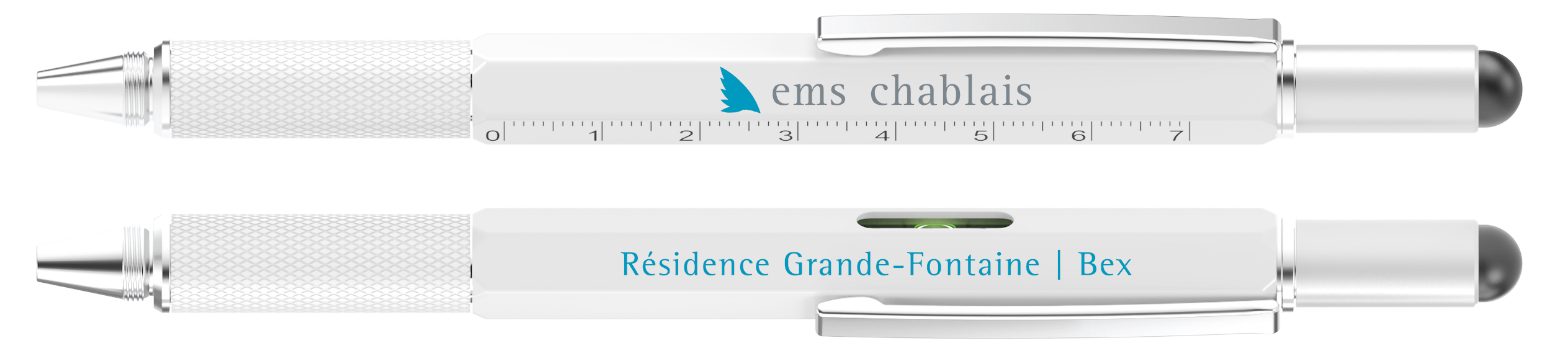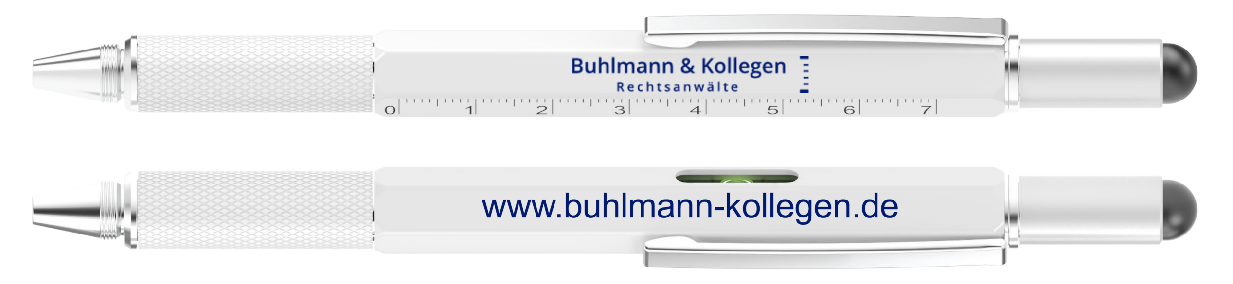- Kugelschreiber, Wasserwaage, Lineal, Schraubenzieher & Stylus