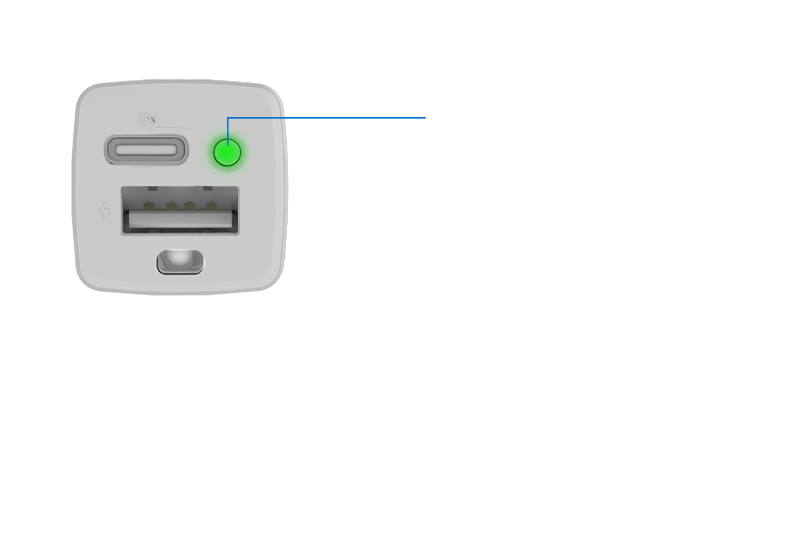 - Durch einfaches Drücken des Knopfes erscheint die Ladeanzeige