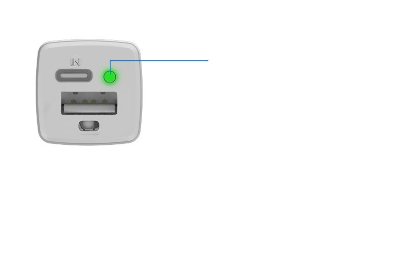 - Durch einfaches Drücken des Knopfes erscheint die Ladeanzeige