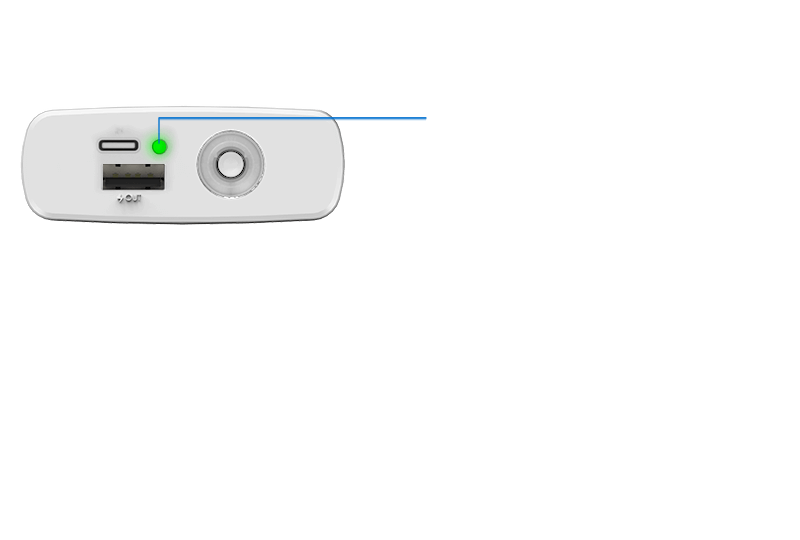 - Durch einfaches Drücken des Knopfes erscheint die Ladeanzeige