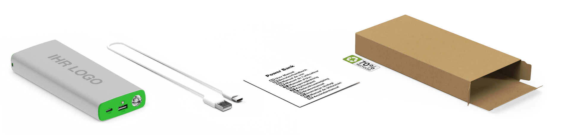 Eingang: 5V/2A, Ausgang: 5V/3ABatterietyp: Lithium-Ionen-Akku