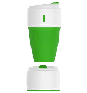 Mit seinem praktischen faltbaren Design passt dieser Kaffeebecher leicht in jede Tragetasche, jeden Rucksack oder jede Handtasche für den geschäftigen Morgen auf dem Weg zur Arbeit. Das Fassungsvermögen von 450 ml eignet sich perfekt für einen großen Kaffee oder Tee, um Ihre Kunden den ganzen Tag über bei Laune zu halten. Fordern Sie noch heute ein kostenloses Angebot an.