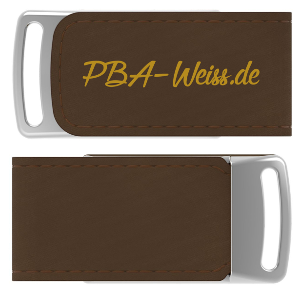 Unser Leder-USB ist nicht nur stilvoll, sondern auch zuverlässig für die Datenspeicherung und damit ein praktisches Accessoire für Ihre Interessenten und Kunden.