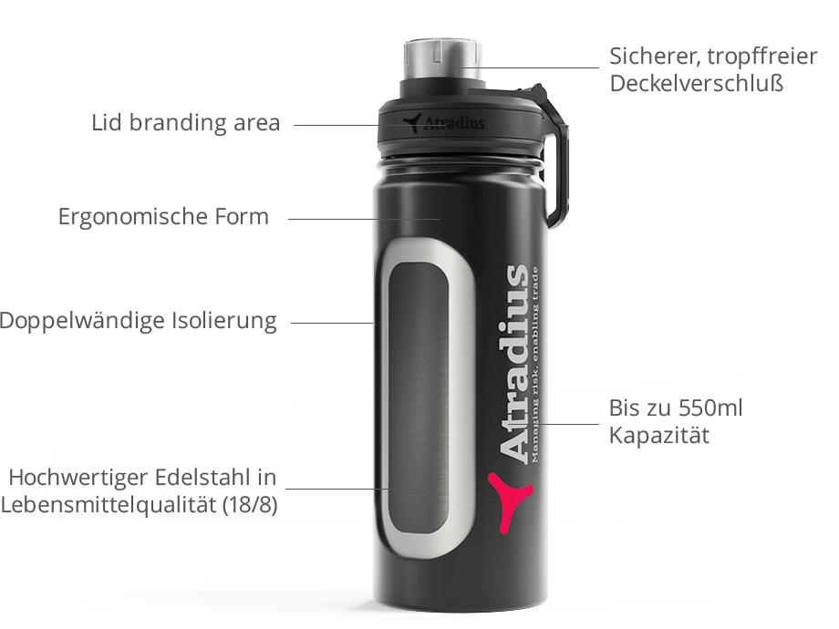 Wir bieten eine 2-Jahres-Garantie auf alle unsere mit Logo bedruckbaren Wasserflaschen.