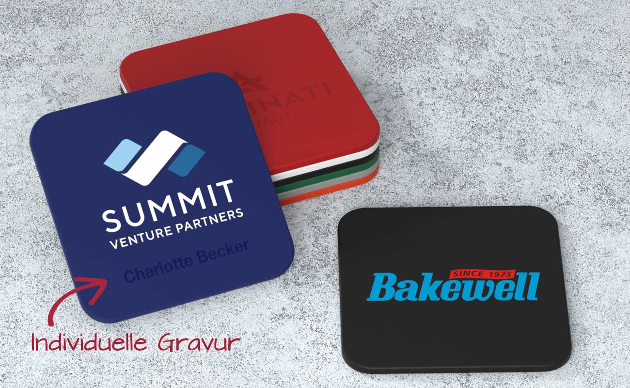 Die Gravur schafft eine permanente Form der Namenskennzeichnung. Das ist ideal für Sportvereine und Schulen, um Verwechslungen von Trinkflaschen oder Reisebechern beim Training oder Wettkampf zu vermeiden. Jeder einzelne Name wird zusammen mit Ihrem Logo und Slogan auf dem Drinkware-Produkt angebracht.
